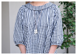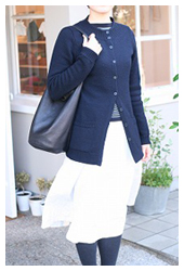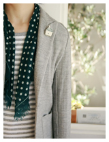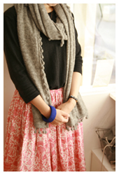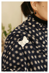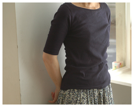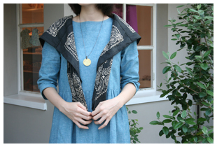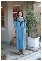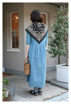 ![]() ![]() ダンガリーブルーのリバーシブルダブルガーゼで水色を表に使い、「パターン95」のギャザースカートをつくりました。 シンプルに無地でまとめた日には、お気に入りの小物やアクセサリーをつけてみます。ストールは巻き方によっていろんな表情が楽しめ、今回は蝶のヘアピンをブローチ代わりにとめてみました。気が付けばいつも好きな紺色を身につけています。 |