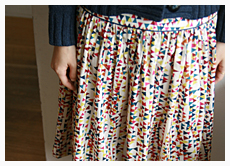 ![]() ![]() 輸入リバティプリントMiles Evansのスカート。前後とも135cm幅いっぱい使って適度なボリュームを出しました。 ニットやカットソーは定番色の無地のものが多いので、リバティプリントは明るめの色のものや大柄のプリントを選ぶことが多いです。たくさんの色の組み合わせは苦手なので、ついつい同じような合わせ方に なってしまうのですが、布の個性に助けられ、コーディネートを楽しんでいます。 |