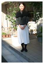 ![]() ![]() ![]() ナチュラルコットンダブルガーゼのホワイトで、『CHECK&STRIPE FLORAL』(世界文化社)に載っているエプロンワンピースを作りました。丈を少し長めにし、スカートとしても使えるようにウエストのゴムの付け位置を調整しました。ストールはC&Sのウールガーゼジャージーの黒です。 ナチュラルコットンダブルガーゼは肌触りと真っ白さがお気に入りの生地です。スカート部分のシルエットが好きで、上からカットソーなどを着て、よくスカートとして着用しています。薄手ですが、あたたかなタイツや上からニットなどを合わせて色々と楽しんでいます。 |